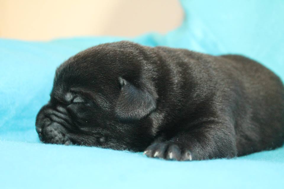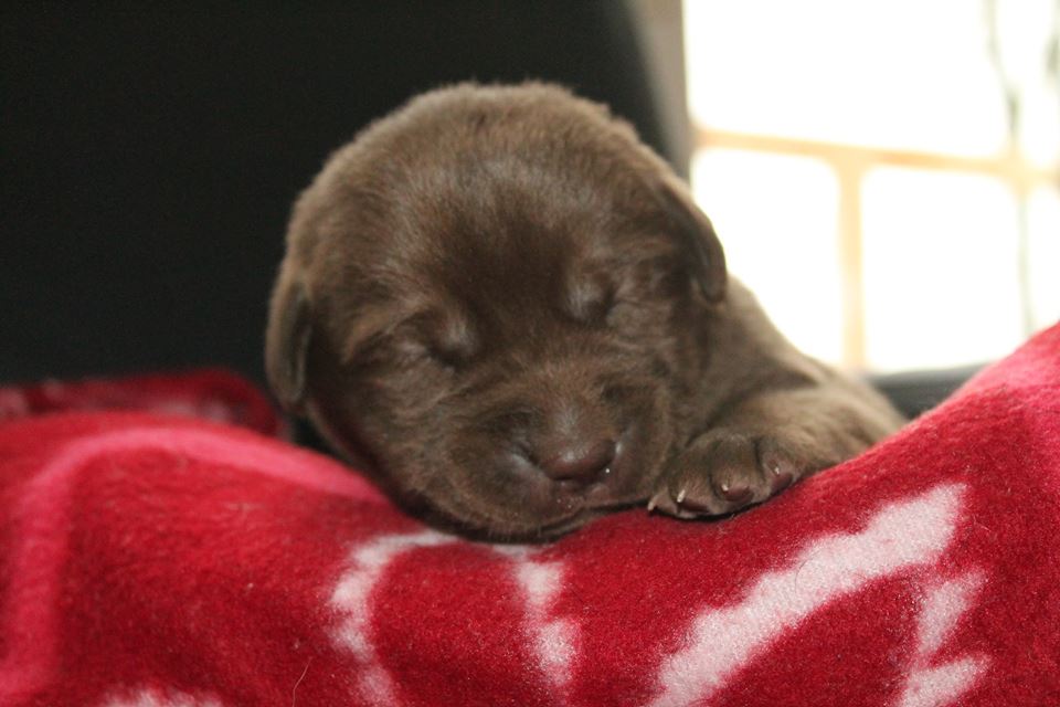 Dnes se po našem Boltíkovi narodil vyrovnáný čoko-černý vrh. Celkem 10 štěňátek. Mají se čile k světu a těšíme se, až je uvidíme.